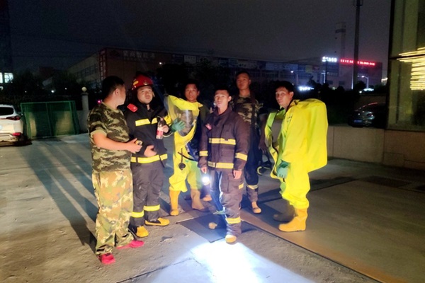 20時許,火勢已被撲滅。一樓機(jī)器設(shè)備中存有三氯氧磷屬高毒化學(xué)品,受火勢高溫影響,連接管密封可能會產(chǎn)生泄漏。指揮員下令由隊員陪同起火單位技術(shù)人員著防護(hù)服進(jìn)入現(xiàn)場拆卸設(shè)備中的三氯氧磷,統(tǒng)一運(yùn)送到金?;瘜W(xué)品市場劇毒品倉庫存放?,F(xiàn)場儲罐類危險化學(xué)品無法夜間轉(zhuǎn)運(yùn),受經(jīng)開區(qū)應(yīng)急管理局委托由應(yīng)急救援隊安排隊員留守現(xiàn)場監(jiān)管。